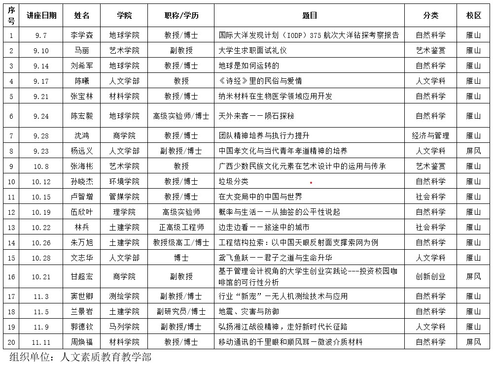 附件:2020秋季学期学生通识教育主题讲座安排见下表。