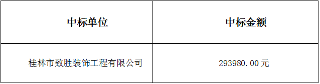 第一推荐中标候选人为桂林市致胜装饰工程有限公司 ,投标报价为 293980.00 元,承诺工期 60 天(日历天),承诺质量等级 合格;