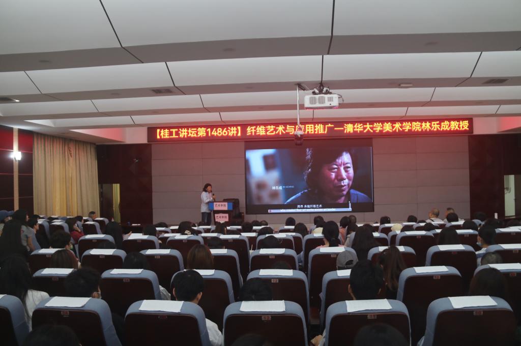 10月21日下午,清华大学美术学院博士生导师、中国工艺美术协会纤维艺术委员会主任委员、中国国家画院研究员、中国工艺美术大师评审委员、中国设计贡献成就奖得主、“从洛桑到北京”国际纤维艺术双年展主导者、中国当代纤维艺术世界巡展策展人林乐成教授,清华大学博士、天津美术学院硕士生导师、格鲁吉亚国立伊利亚大学联合培养博士吴敬副教授应Beat365官网邀请做客桂工讲坛,在雁山校区逸夫楼地球科学学院报告厅分别作了题为“纤维艺术应用与推广”“跨界为壁毯艺术带来的形象特征和表达方式”的讲座。艺术学院相关专业200余名师生参加了本次讲座。