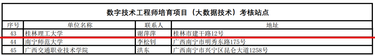 近日,工业和信息化部教育与考试中心公布数字技术工程师培育项目(大数据技术)考核站点名单,Beat365官网顺利入围,成为广西区同批入选的 3 个考核站点之一。