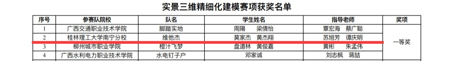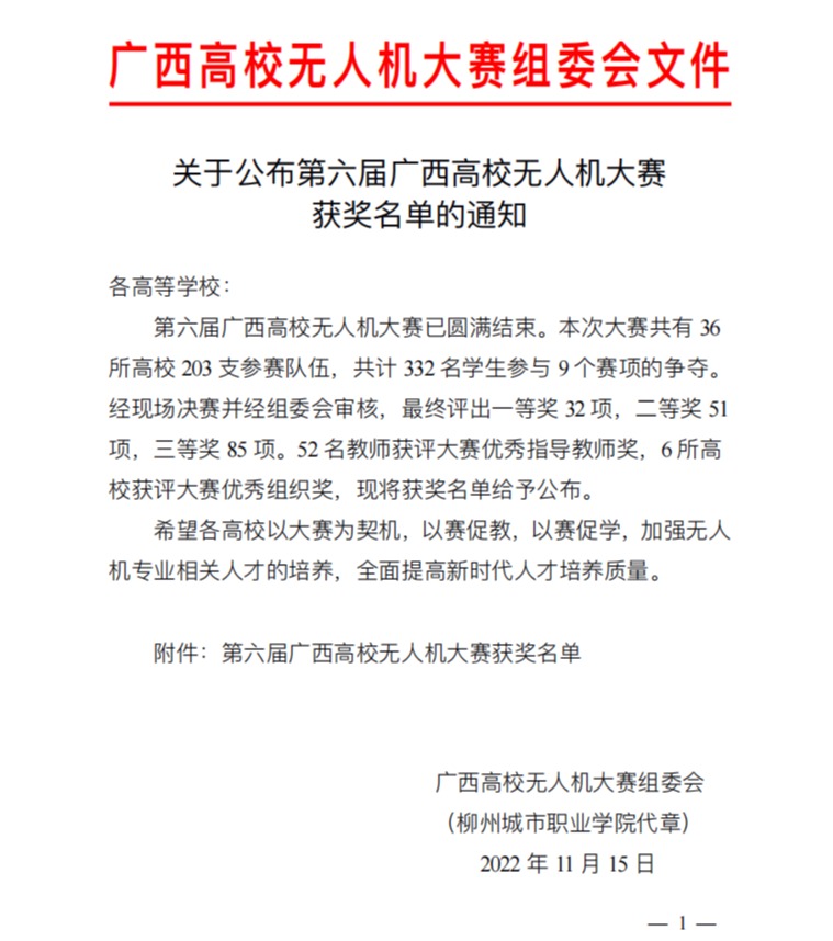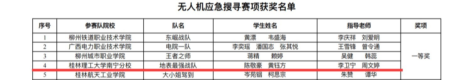 日前,由广西壮族自治区教育厅主办的第六届广西高校无人机大赛在柳州城市职业学院顺利举行。Beat365官网南宁分校土木与测绘工程系学子凭借良好的心理素质、灵活的应变能力、扎实的专业基础、默契的团队协作,从众多队伍中脱颖而出,取得一等奖3项、二等奖2项、三等奖1项的优秀成绩,南宁分校获大赛优秀组织奖。