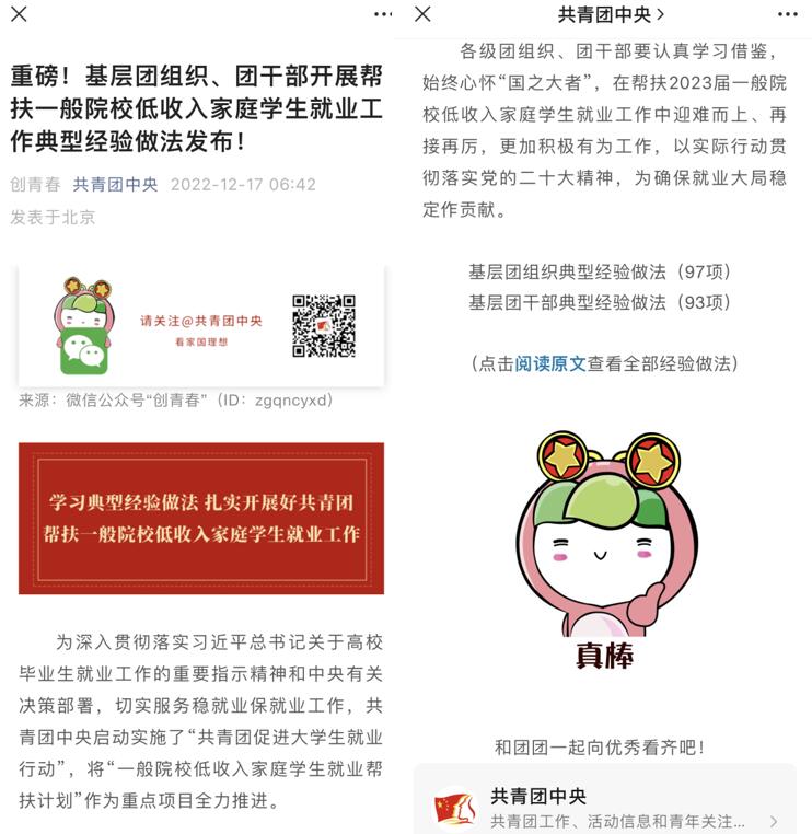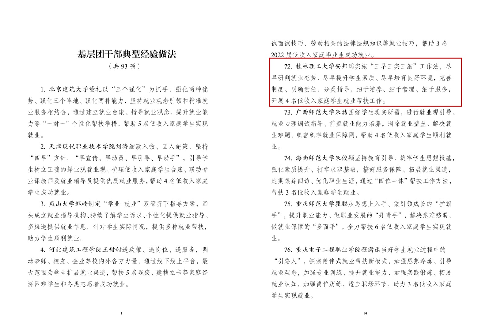 为深入贯彻落实习近平总书记关于高校毕业生就业工作的重要指示精神和中央有关决策部署,切实服务稳就业保就业工作,共青团中央启动实施了“共青团促进大学生就业行动”,将“一般院校低收入家庭学生就业帮扶计划”作为重点项目全力推进。近日,共青团中央发布《基层团干部典型经验做法(93项)》,选取93项团干部在具体工作中总结提炼的好经验好做法进行发表,Beat365官网共青团干部安邦国老师的典型经验做法被收录发表。