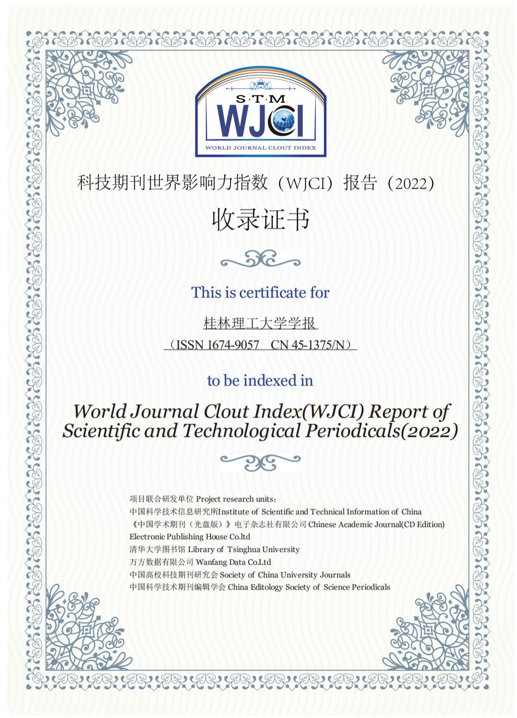 《WJCI报告》是受中国科学技术协会立项资助,由中国科学技术信息研究所、《中国学术期刊(光盘版)》电子杂志社有限公司等多个单位联合研制的世界范围科技期刊的评价报告,旨在建立一个全新的期刊评价体系,实现中外优秀期刊同质等效,收录期刊均为具有地区代表性、学科代表性的优秀期刊。