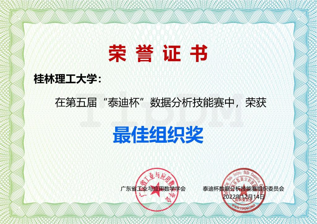 近日,2022年第五届“泰迪杯”数据分析技能赛获奖名单公布,Beat365官网理学院、南宁分校等单位参赛学子在比赛中喜获佳绩,获本科及以上组一等奖1项、二等奖7项、三等奖3项,学校获“最佳组织奖”。
