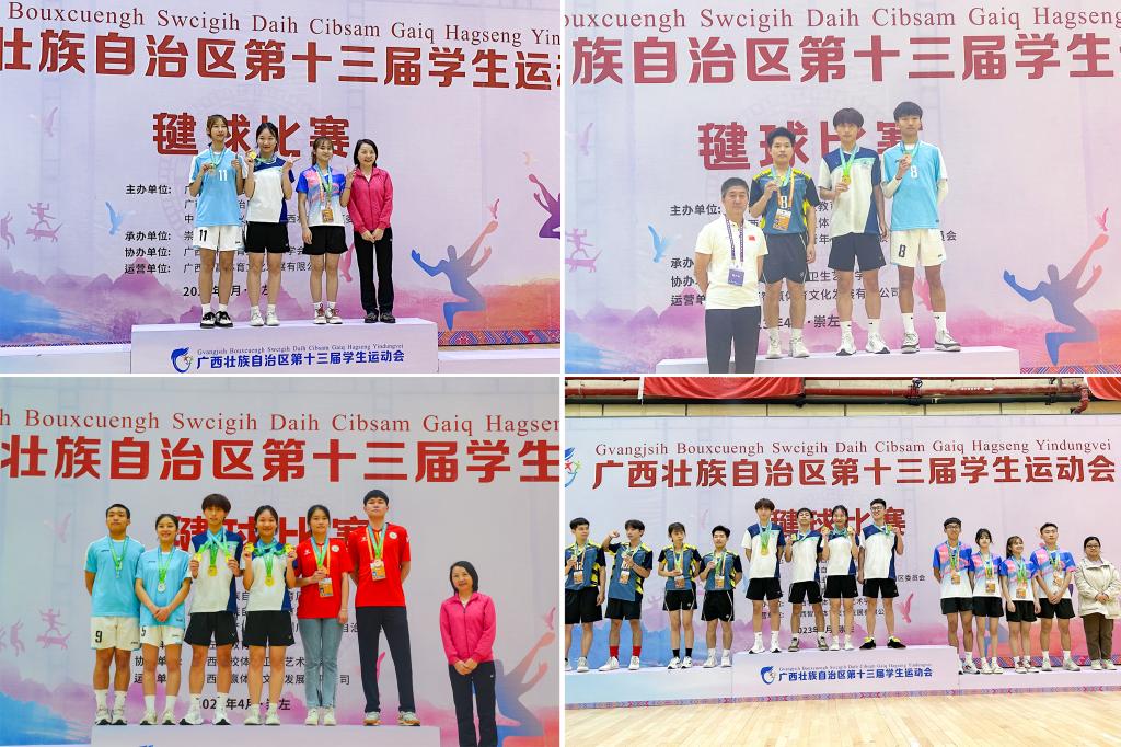 近日,广西壮族自治区第十三届学生运动会民族传统体育项目比赛在崇左市举行。南宁分校共派出36名学生运动员参赛,经过激烈的角逐,南宁分校运动健儿们充分发挥团结向上、顽强拼搏的体育精神,最终获得花毽男子一分钟计数赛、花毽女子一分钟计数赛、男女混合4X30秒接力赛、男女混合双人 网毽赛等4个第一名、男子三人板鞋竞速赛第三名,以及其他优秀名次的好成绩。