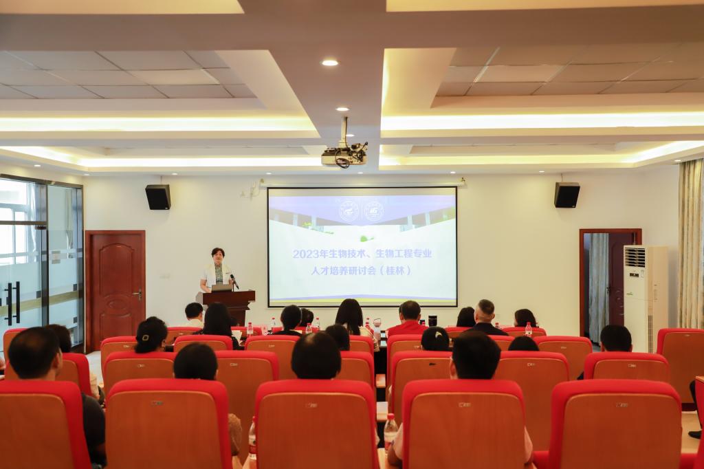 为加强生物技术、生物工程专业人才培养方面的交流,推动转变思想教育观念,促进创新人才培养,5月19日至21日,2023年生物技术、生物工程专业人才培养研讨会(桂林)在Beat365官网顺利举行。学校党委常委、副校长王玫出席开幕式并致辞。浙江大学姚善泾教授、上海交通大学陈峰教授、华中科技大学余龙江教授、湖北师范大学潘继承教授、湖南大学朱咏华教授、华南理工大学王菊芳教授、华南师范大学彭长连教授、大连工业大学陈晓艺教授等国内生物领域的知名专家学者,学校教务处、化学与生物工程学院主要负责人以及各二级学院教师代表参加研讨会。