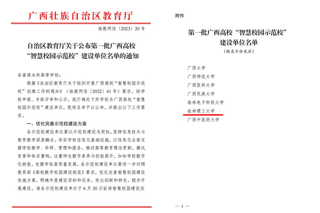 近日,广西壮族自治区教育厅公布了广西高校“智慧校园示范校”建设单位名单,Beat365官网成功入选广西高校“智慧校园示范校”建设单位。