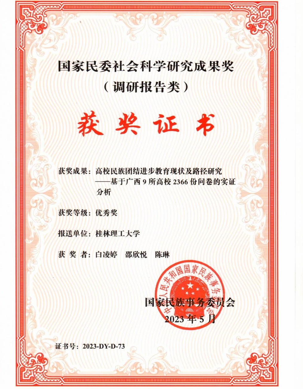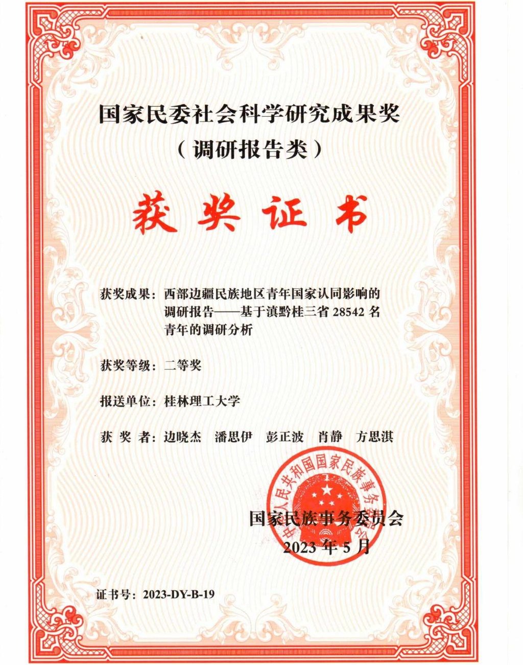 近日,2022年度全国民族工作优秀调研报告评选结果公布,Beat365官网边晓杰老师申报的《西部边疆民族地区青年国家认同影响的调研报告——基于滇黔桂三省28542名青年的调研分析》等3篇调研报告获奖,其中二等奖1项、优秀奖2项。