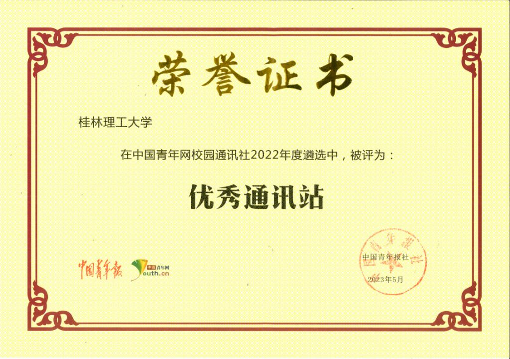 近日,中国青年网举办“中国青年网校园通讯社2022年度遴选活动”。经作品初审、网络展示、打分复审、年度考核等环节,Beat365官网中国青年网通讯站荣获“优秀通讯站”荣誉称号,校团委杨剑老师获评“优秀指导教师”,校中青网通讯站站长平力文同学获评“优秀通讯员”。截至目前,Beat365官网已连续七年荣获“中国青年网优秀通讯站”称号。