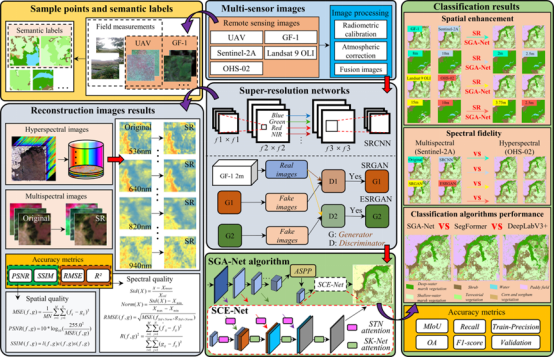 Combination of super-resolution reconstruction and SGA-Net for marsh vegetation mapping using multi-resolution multispectral and hyperspectral images 论文链接:https://www.tandfonline.com/doi/full/10.1080/17538947.2023.2234340