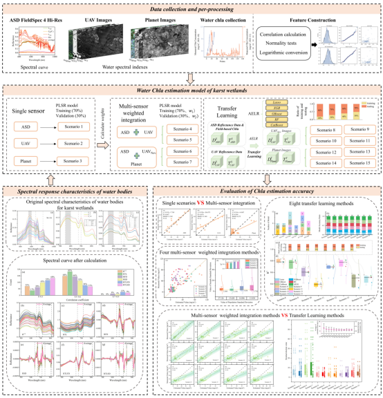 Multi-sensor and multi-platform retrieval of water chlorophyll a concentration in karst wetlands using transfer learning frameworks with ASD, UAV, and Planet CubeSate reflectance data 论文链接:https://www.sciencedirect.com/science/article/pii/S0048969723045886