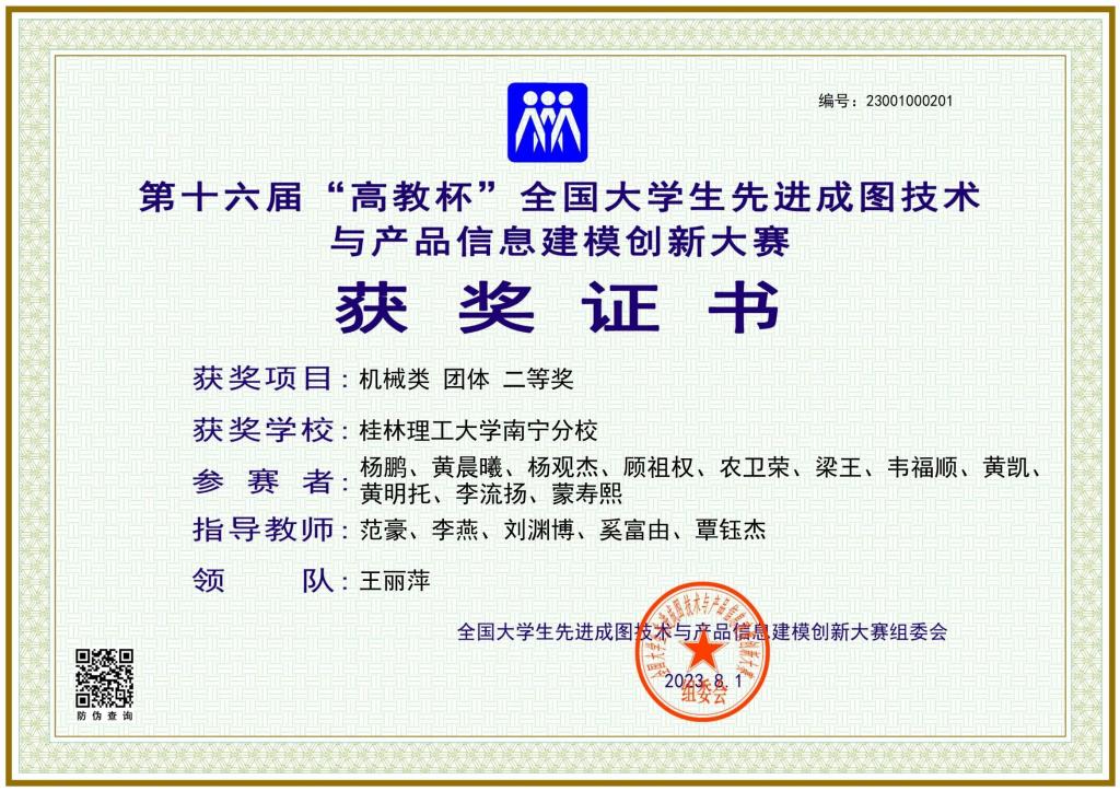近日,全国大学生先进成图技术与产品信息建模创新大赛组委会公布了第十六届“高教杯”全国大学生先进成图技术与产品信息建模创新大赛获奖名单。南宁分校参赛队伍荣获一等奖2项、三等奖3项,并获大赛团体二等奖。