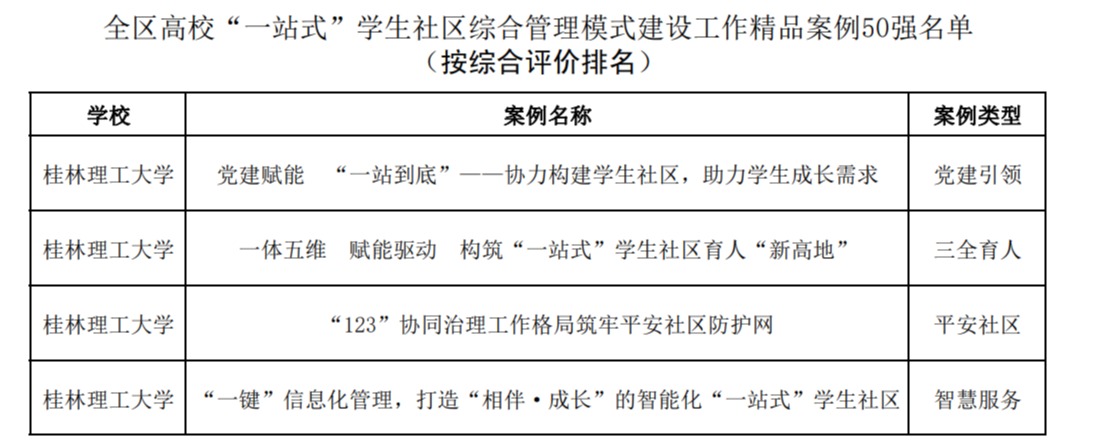 Beat365官网4个案例入选全区高校“一站式”学生社区综合管理模式建设工作精品案例50强