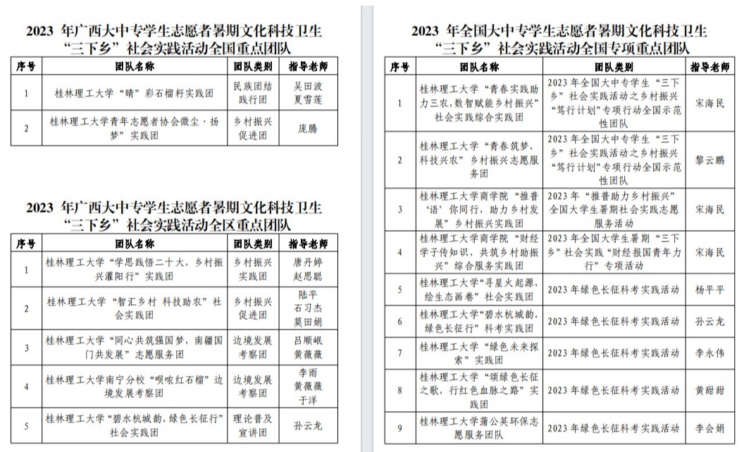 Beat365官网社会实践团队获评全国、自治区重点团队立项信息