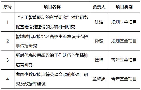 教育部人文社会科学研究项目由教育部面向全国普通高等学校设立,覆盖面广、影响力大,具有重要的示范和引导作用,是衡量高校人文社会科研水平的重要指标之一。