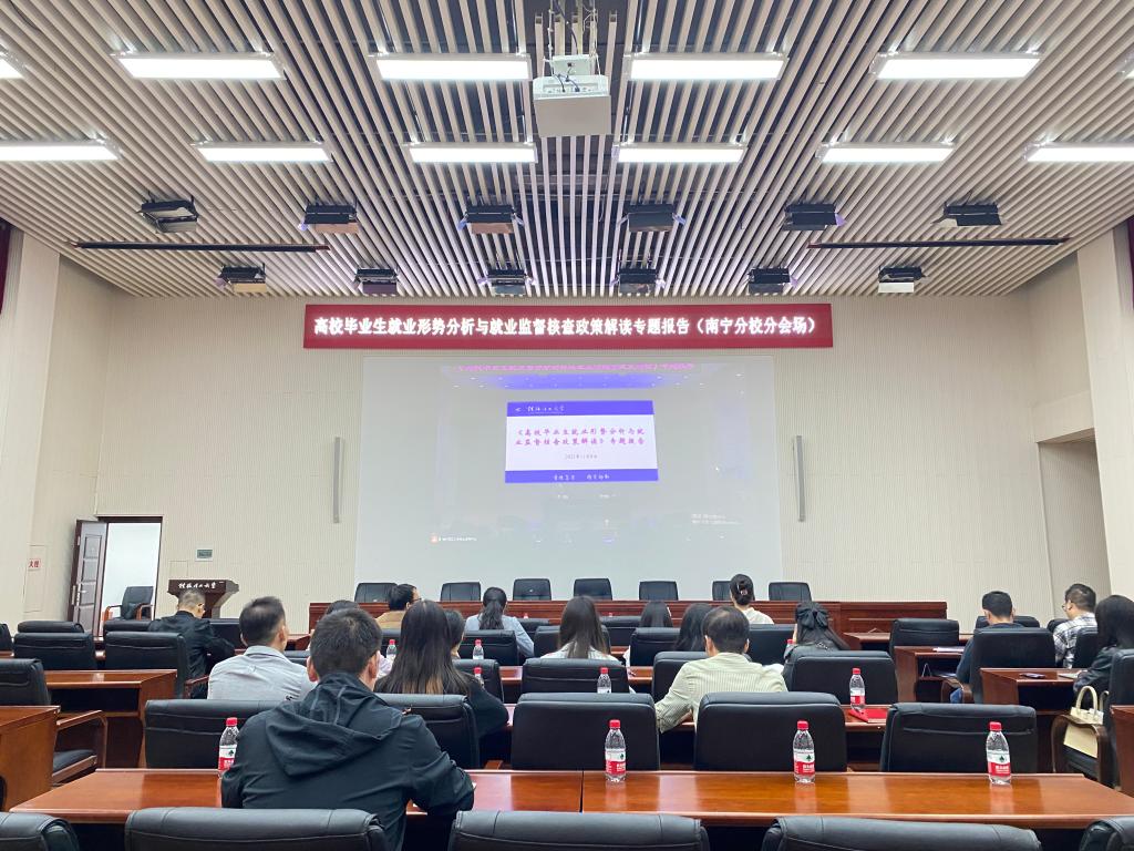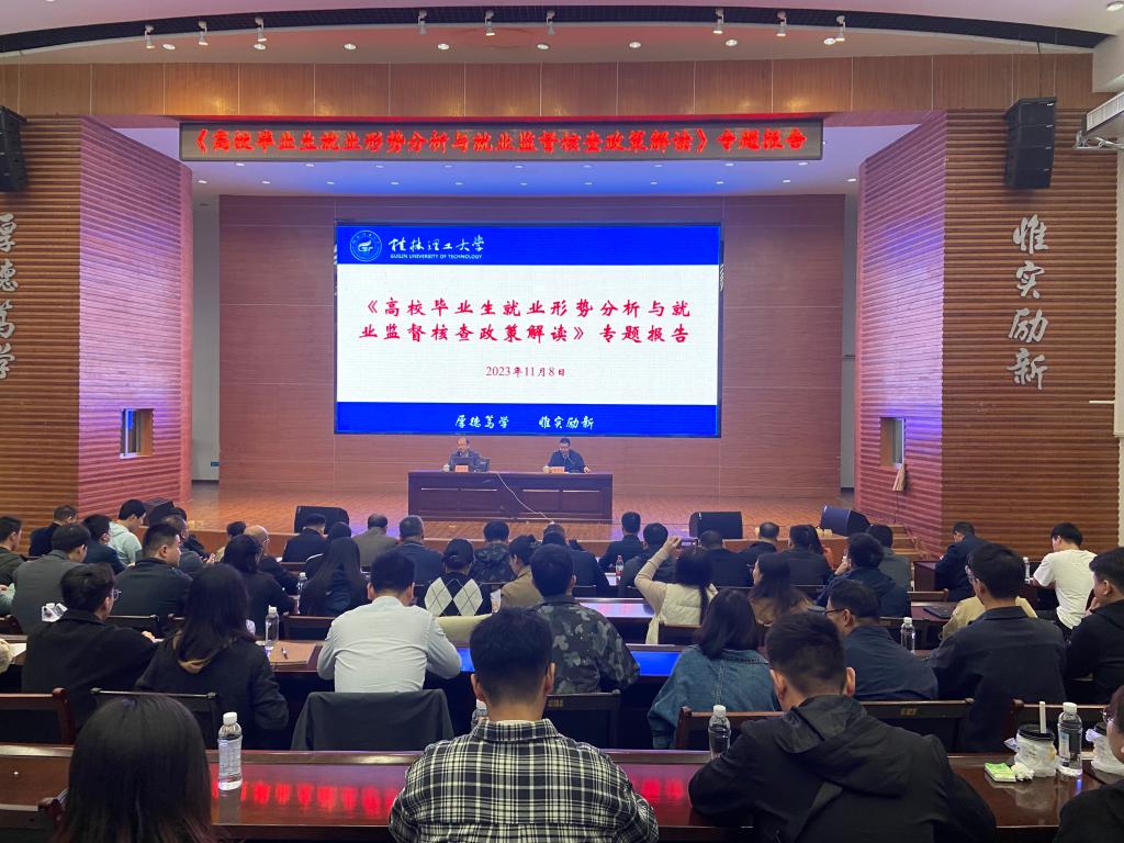 11月8日上午,广西高校毕业生就业创业指导中心副主任吴桂彬应邀到Beat365官网作就业工作专题报告。报告由校长助理潘旦光主持,学工、团委、研究生院、二级学院、南宁分校等部门相关人员及全体专兼职辅导员参加报告。