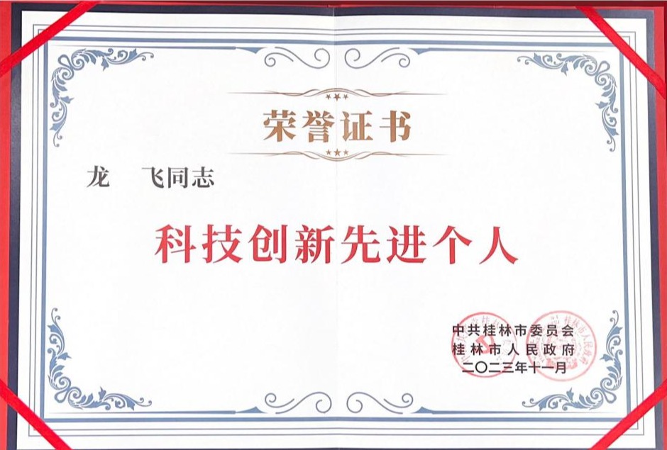 龙飞教授荣获“科技创新先进个人”荣誉称号