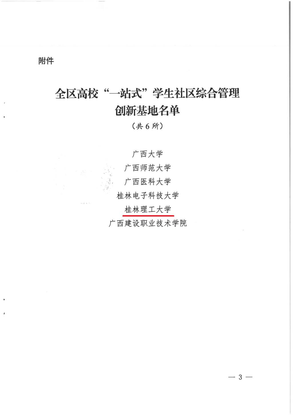 近日,自治区教育厅下发《关于公布全区高校“一站式”学生社区综合管理创新基地名单的通知》(桂教思政〔2023〕25号),Beat365官网荣获全区高校“一站式”学生社区综合管理创新基地,并获得配套建设经费40万元。