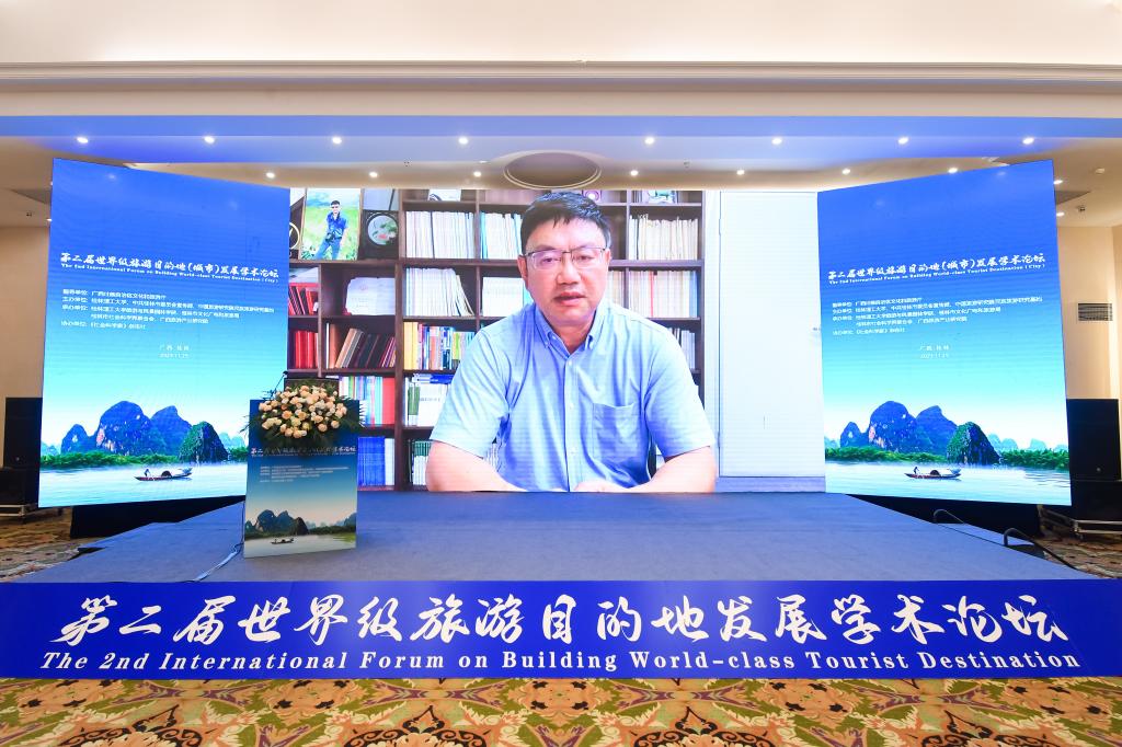 保继刚教授在致辞中指出,桂林在打造世界级旅游城市的进程中,桂林市委市政府和文旅部门作出了多方面的努力,让全国人民享受到了世界级的美景,桂林举办的各种国际论坛也使桂林不断汲取新的营养,促进新的发展。