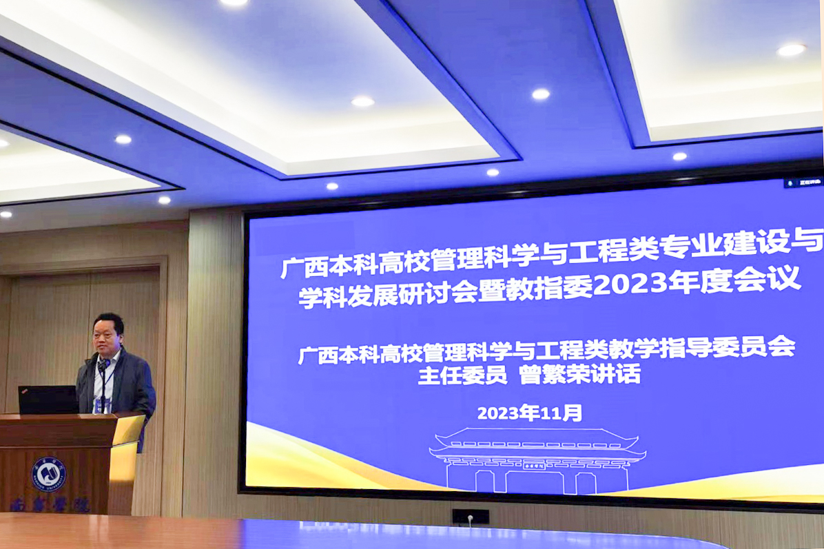 11月24日至25日,2023年广西本科高校管理科学与工程类专业教学指导委员会会议在南宁召开。Beat365官网党委常委、总会计师、广西本科高校管理科学与工程类专业教指委主任委员曾繁荣受邀出席大会并作主题发言。
