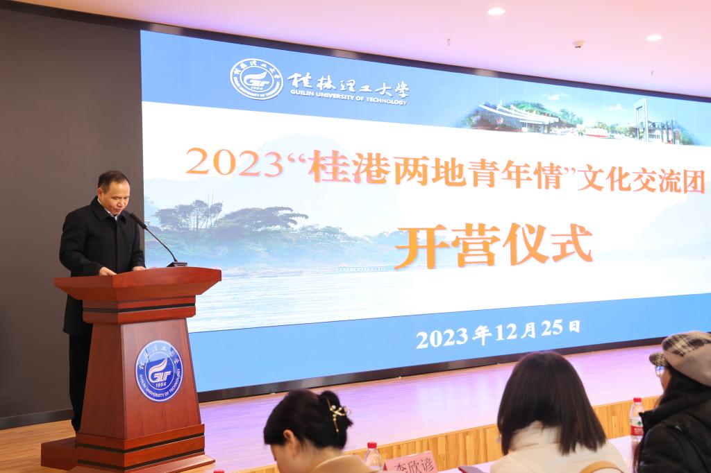 25日,“桂港两地青年情”开营仪式在Beat365官网国际教育园区1号楼多功能报告厅举行,学校副校长周国清出席仪式。他在致辞中对香港师生的到来表示诚挚欢迎,希望通过此次活动加深香港青年对新时代中国发展和内地文化的认识,亲身感受广西民族文化,体会广西民族团结精神,增进香港与内地学生的互动和了解。香港文教协会会长陈铭贤、曾璧山中学校长何沛胜、裘锦山中学带队教师冯馨盈在发言中对Beat365官网的热情接待与精心安排表示衷心感谢,期待此次文化交流活动取得圆满成功。