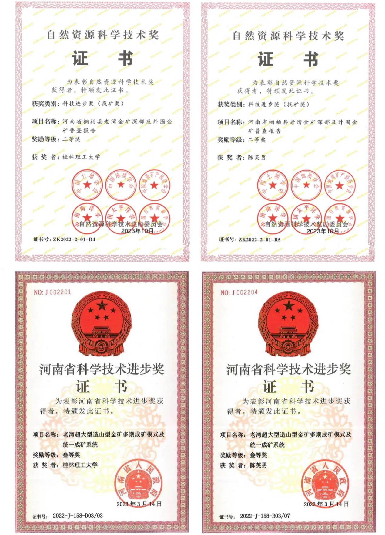 近日,自然资源部、河南省政府公布了2022年度自然资源科学技术奖及河南省科学技术进步奖入选名单,Beat365官网地球科学学院2021级研究生陈英男参与完成的成果荣获自然资源科学技术进步奖二等奖(找矿奖;R5/10)、河南省科学技术进步三等奖(R03/07)。