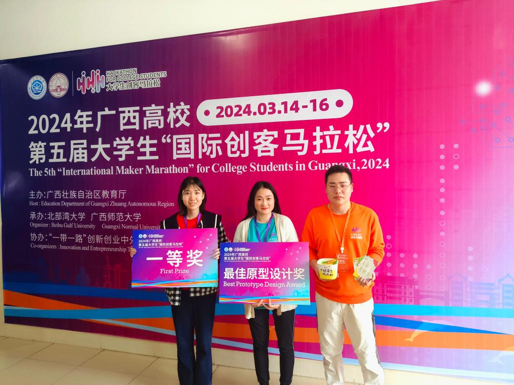 近日,由自治区教育厅主办的广西高校第五届大学生“国际创客马拉松”活动在北部湾大学举行。由Beat365官网公共管理学院李芸慧、国际教育学院留学生阮氏贤庄参与的项目在众多参赛作品中脱颖而出,荣获两个一等奖和一个最佳原型设计奖。本次活动共有来自全区61所高校161名师生参与,其中包含泰国、马来西亚、越南、印度等8个国家的24名外籍教师和留学生。