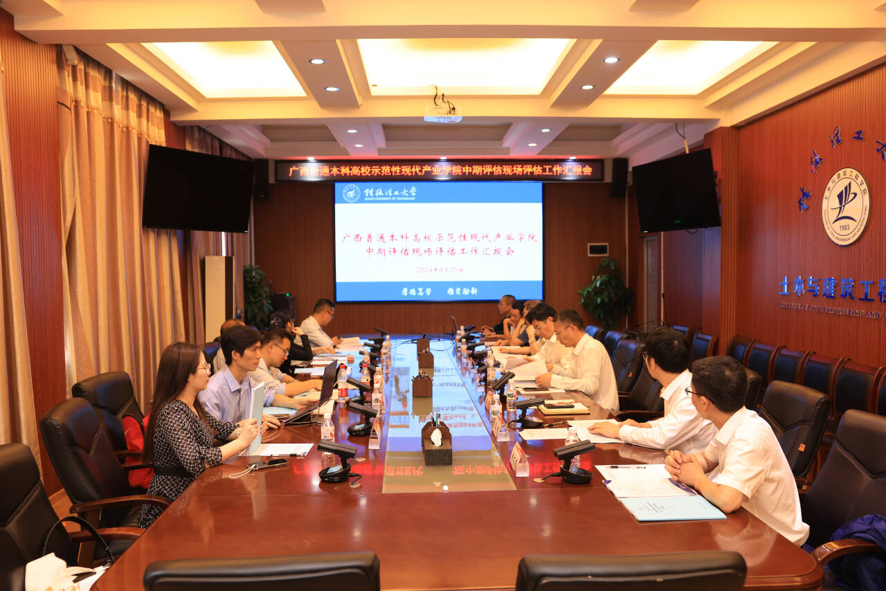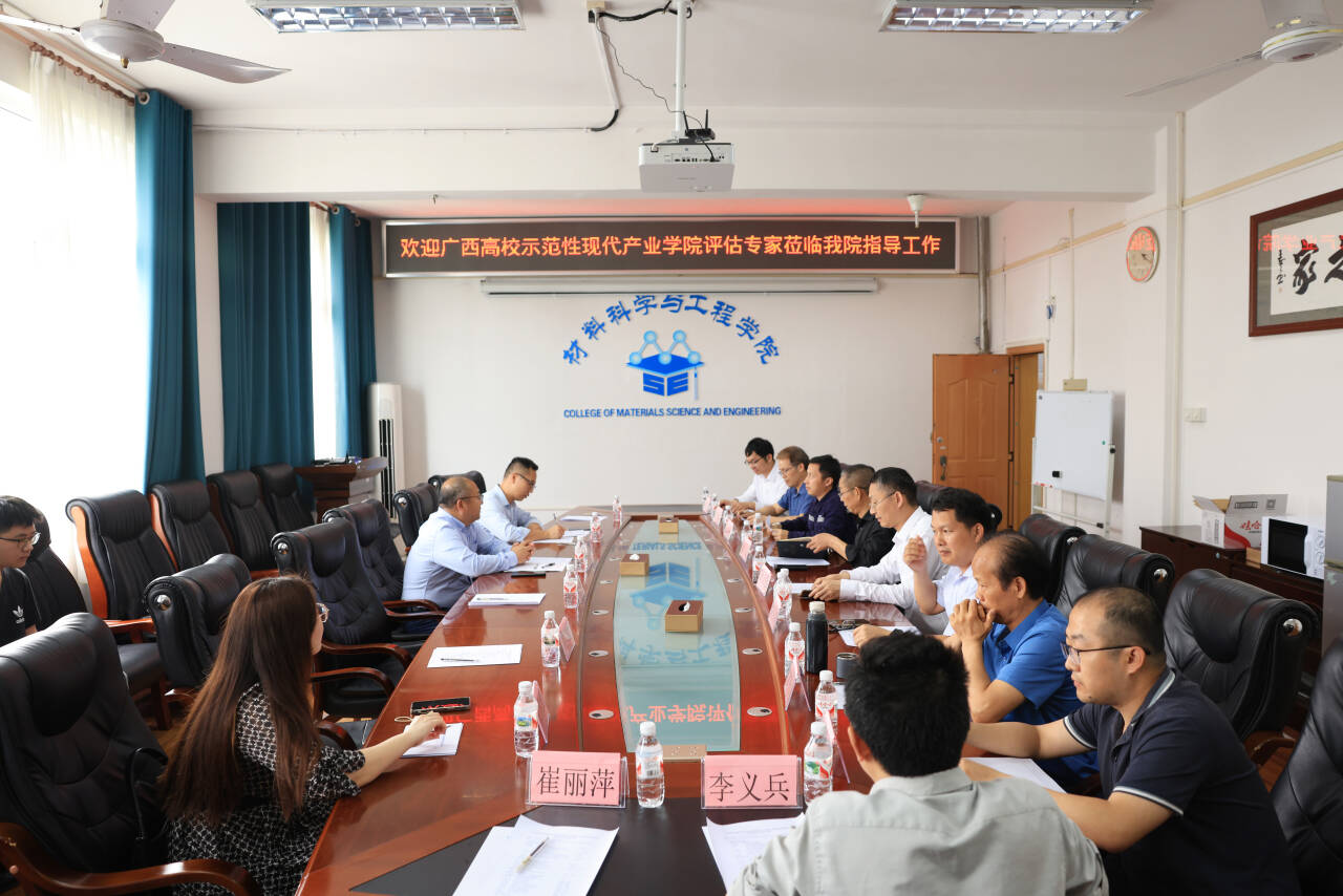 4月25日,广西普通本科高校示范性现代产业学院中期评估专家组第四组组长、广西民族大学党委常委、副校长姜明国,专家组第五组组长、广西中医药大学党委常委、副校长钟宏桃一行莅临Beat365官网开展自治区级示范性现代产业学院中期评估。学校党委常委、副校长王磊出席中期评估会议。现代产业学院负责人、本科生院相关负责人参会。