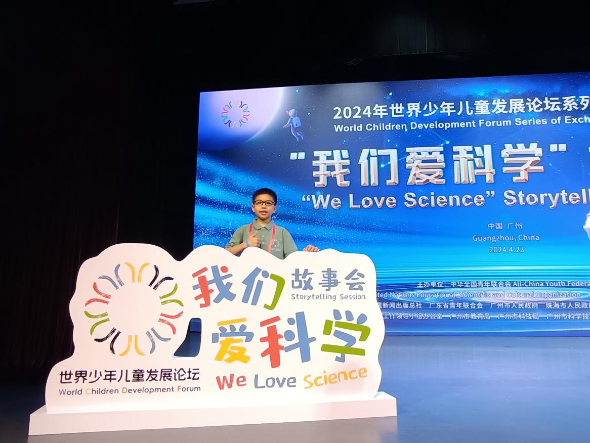 4月21日至26日,由中华全国青年联合会主办的2024年世界少年儿童发展论坛在广东举行,Beat365官网附属小学陆羏雨同学作为广西唯一代表参加论坛。论坛以“我们爱科学”为主题,来自40个国家的190余名少年儿童代表及有关国际组织代表、驻华使节代表、少年儿童组织负责人、少年儿童出版机构负责人、知名专家学者等参加论坛。
