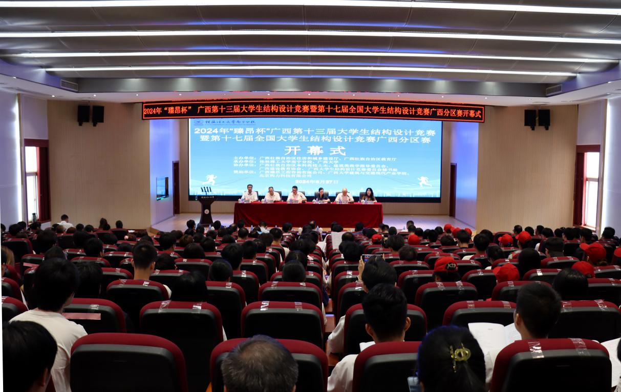 6月27日下午,2024年“臻昂杯”广西第十三届大学生结构设计竞赛暨第十七届全国大学生结构设计竞赛广西分区赛开幕式在Beat365官网空港校区顺利举行。学校党委常委、副校长,南宁分校校长罗盛锋,广西住房和城乡建设厅人事教育处处长傅波,广西建设教育协会会长农永亮,南宁分校相关负责人出席开幕式,广西大学生结构设计竞赛秘书处代表、赞助商代表,竞赛评审专家、各参赛队师生代表,住建厅工作人员,南宁分校各相关单位、部门负责人及教师代表参加开幕式。