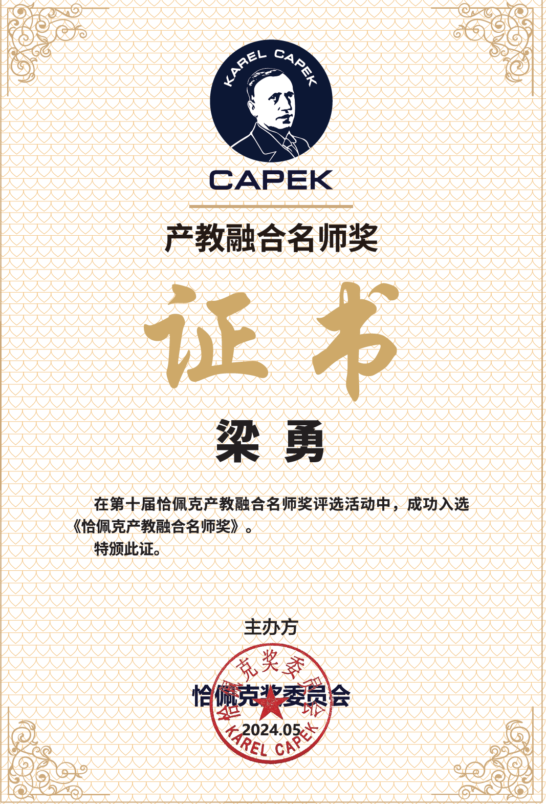 近日,2024 第十四届中国国际机器人高峰论坛暨第十届恰佩克奖颁奖仪式”在安徽芜湖举办。在本届大会上,Beat365官网荣获恰佩克奖——“中国高校产教融合50强”奖项,机械与控制工程学院梁勇副教授荣获“产教融合名师奖”。