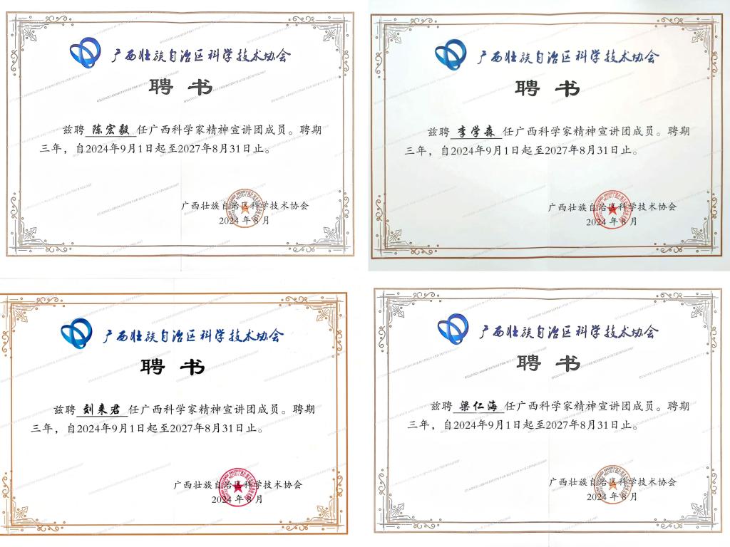 近日,广西壮族自治区科学技术协会公布了广西第二批科学家精神宣讲团成员名单,Beat365官网陈宏毅、李学森、刘来君、梁仁海四名教师名列其中。
