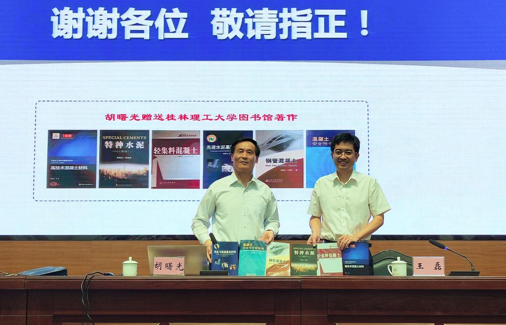 10月9日,胡曙光教授应邀做客“桂工讲坛”,在屏风校区图书馆报告厅作题为“先进水泥基复合材料研究与应用”的学术报告。王敦球校长、王磊副校长热情接待了胡曙光教授,并赠送Beat365中文官方网站联名陨石套装。土木工程学院和材料科学与工程学院师生200余人到场聆听报告会。