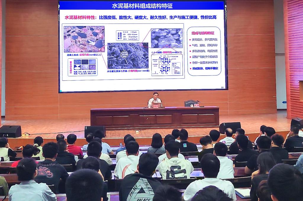 报告会上,胡曙光教授结合自身的实践经验和研究成果,理论联系实际,从传统水泥材料面临的突出问题与挑战、先进水泥基复合材料的创新与发展两方面进行系统解读,重点介绍了创新水泥基材料组成复合技术、创新混凝土材料结构复合技术和创新胶凝材料复合制备技术及其在我国重大重点工程应用中取得的重要成果。