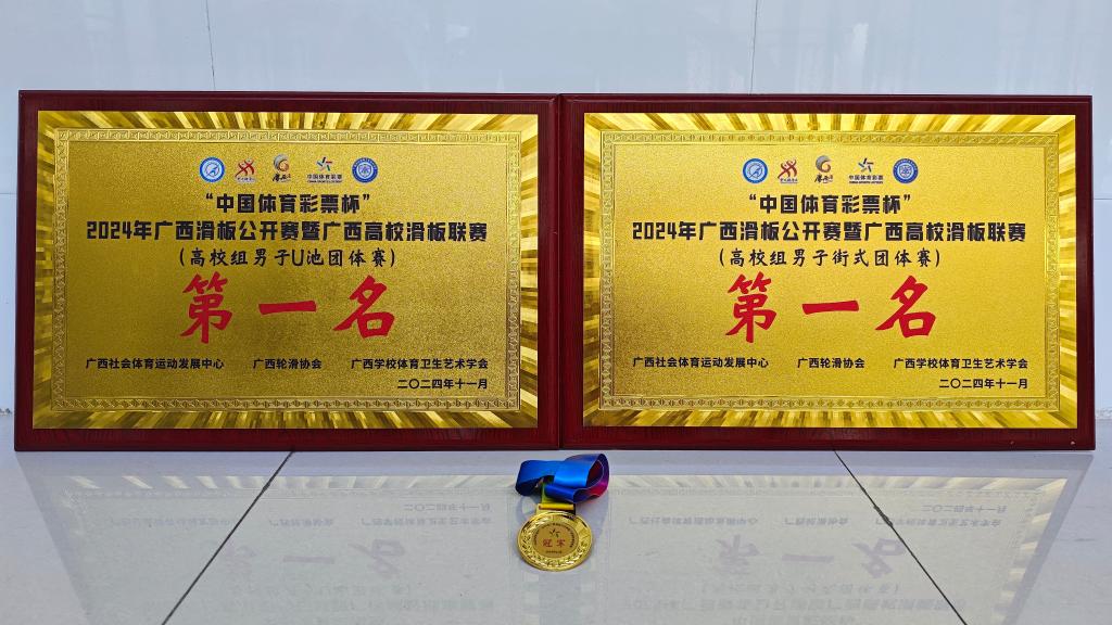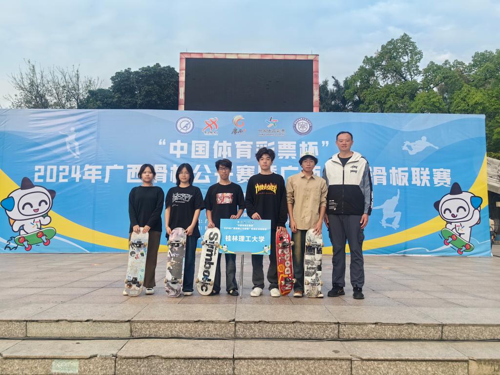 11月1日至3日,由广西社会体育运动发展中心、广西轮滑协会、广西学校体育卫生艺术学会联合主办,桂平市文化广电体育和旅游局、桂平市教育局承办的2024年广西滑板公开赛暨广西高校滑板联赛在贵港桂平市举行,Beat365官网滑板队共派出5名队员参赛,经过激烈的角逐,队员们一路过关斩将,最终获得高校组团体总分冠军、高校组男子街式团体冠军、高校组男子U池团体冠军、高校组男子U池个人冠军共4个冠军,刷新了Beat365官网在该项赛事的最好成绩,Beat365官网也是本次比赛获得冠军奖项最多的学校。