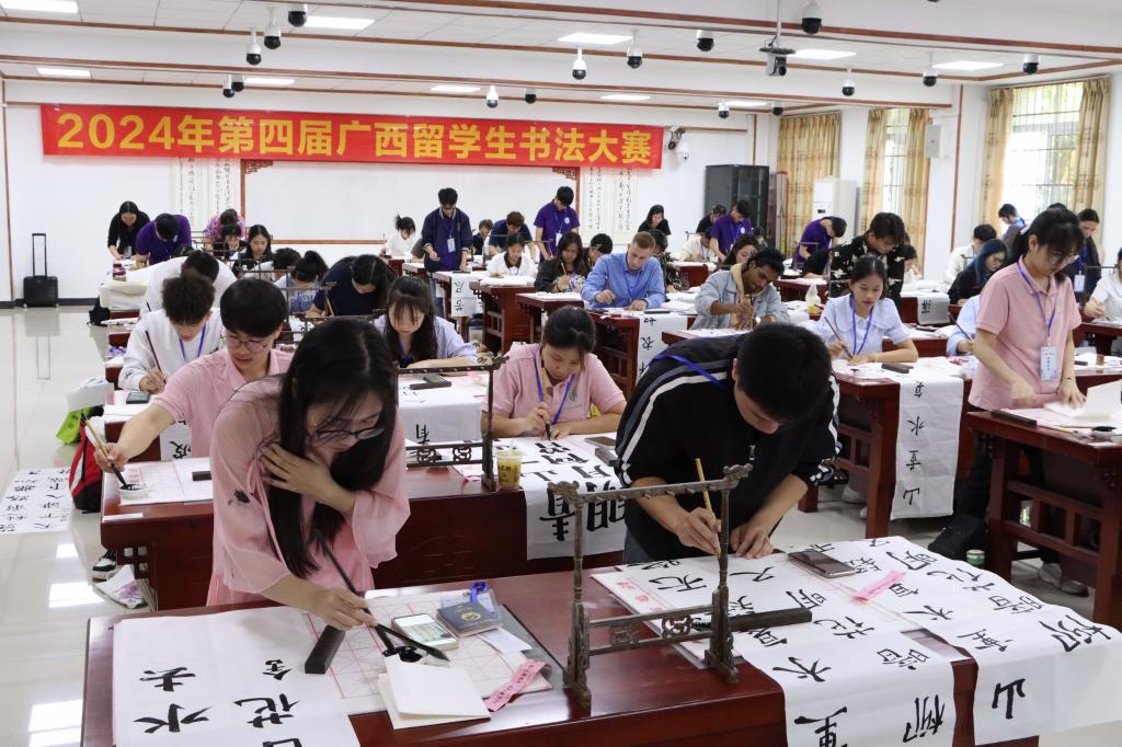 本次广西来华留学生书法大赛以“文化交流融通,汉字书写相拥”为主题,旨在弘扬中华优秀传统文化,推进书法技艺的传承与发展,增进国际友谊,促进多元文化的交流发展。大赛吸引了来自区内20余所高校的优秀留学生选手参加,Beat365官网留学生在比赛中凭借扎实的书法功底取得佳绩,展现了Beat365官网留学生的风采。