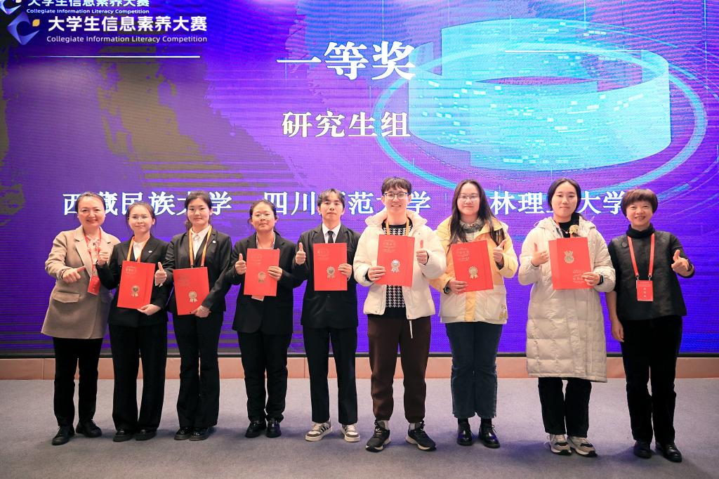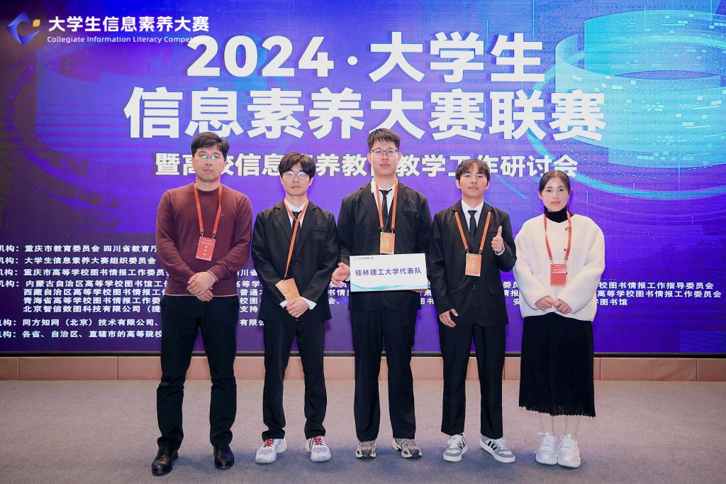 12月5日,由重庆市教育委员会、四川省教育厅指导,大学生信息素养大赛组委会主办,重庆市高等学校图书情报工作委员会、重庆大学、四川省普通高等学校图书情报工作指导委员会、四川大学承办的2024年大学生信息素养大赛联赛在重庆大学成功举办。Beat365官网研究生参赛队伍“天选小队”荣获研究生组一等奖,段雪茹、侯辉两位老师荣获大赛“优秀指导老师”荣誉称号。