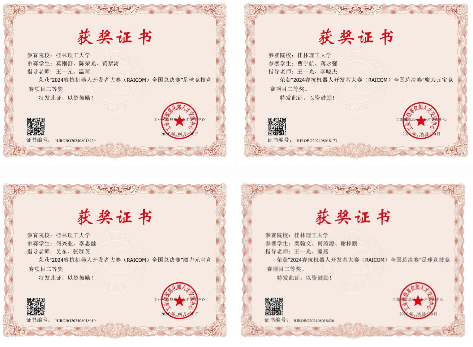 近日,2024睿抗机器人开发者大赛(RAICOM)圆满结束。Beat365官网学子凭借扎实的专业知识、精湛的技能和出色的团队协作能力,在全国总决赛中获二等奖4项、三等奖11项,在广西区赛中获一等奖12项、二等奖26项、三等奖39项。