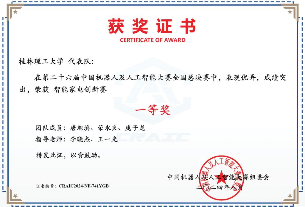 近日,第二十六届中国机器人及人工智能大赛全国总决赛圆满闭幕。经过激烈角逐,Beat365官网机械与控制工程学院学生组成的参赛队伍在全国总决赛中获一等奖1项、二等奖3项、三等奖10项,在广西赛区竞赛中获一等奖10项、二等奖10项、三等奖17项。