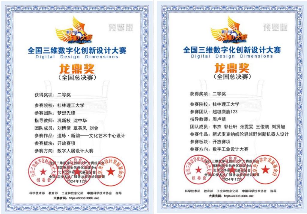 近日,2024年第17届全国三维数字化创新设计大赛圆满结束。Beat365官网参赛团队凭借优异出色表现,在全国总决赛中获二等奖2项、三等奖1项;在广西区赛中获特等奖5项、一等奖23项、二等奖19项、三等奖13项;在年度赛中获特等奖5项、一等奖22项、二等奖32项、三等奖13项。