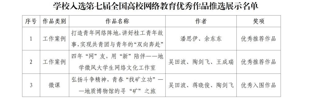 学校入选第七届全国高校网络教育优秀作品推选展示名单