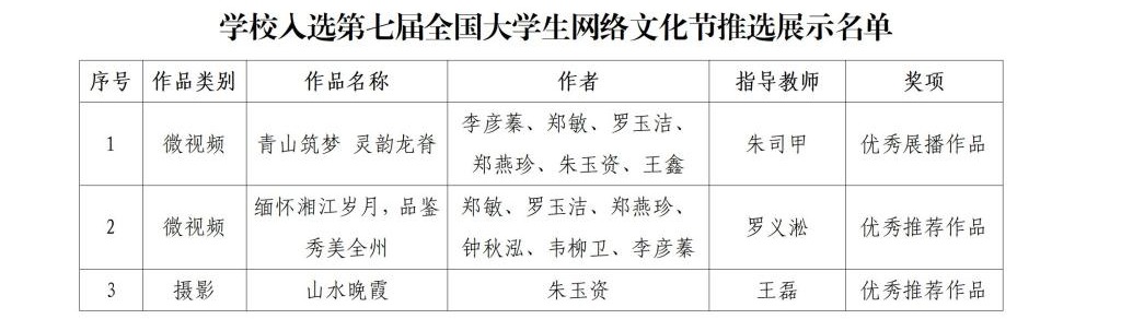 学校入选第七届全国大学生网络文化节推选展示名单