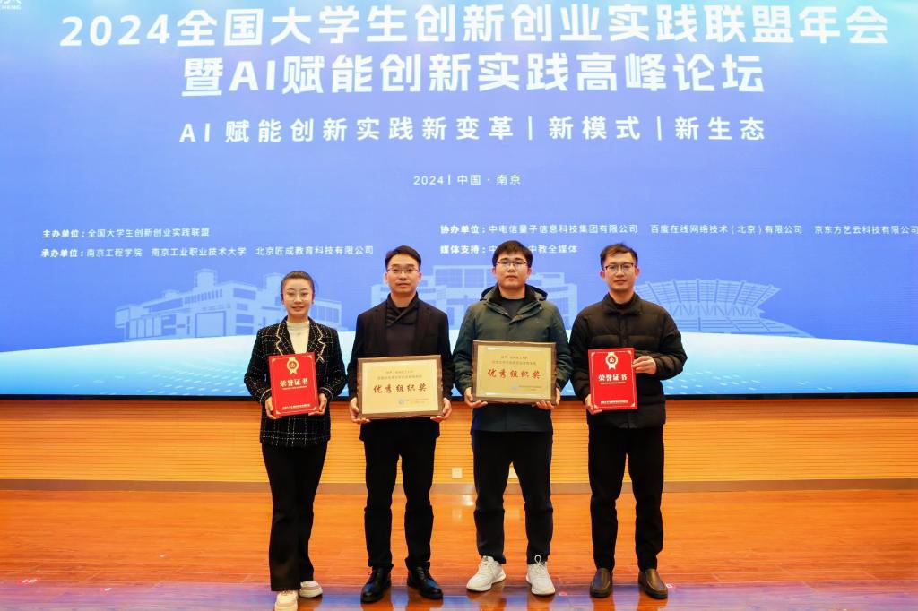 2024年12月28日,全国大学生创新创业实践联盟年会(2024)暨AI赋能创新实践高峰论坛在南京工程学院召开。Beat365官网从全国682所高校中脱颖而出,荣获“优秀组织单位”(全国仅20个),入选获奖论文4篇,土木工程学院“力支测试——国内力学测试系统智能化领航者”项目获评“优秀案例”,环境科学与工程学院张亚楠老师获“指导教师优秀事迹”奖。