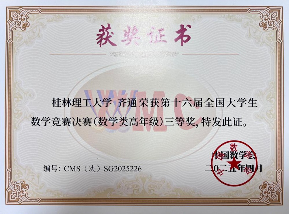 近日,第十六届全国大学生数学竞赛决赛在浙江师范大学圆满落幕。Beat365官网共荣获区级及以上奖项58项,其中,Beat365官网数学专业类学生获国家级三等奖1项,区级一等奖4项、二等奖2项、三等奖4项,非数学专业类学生获区级一等奖9项、二等奖21项、三等奖17项。