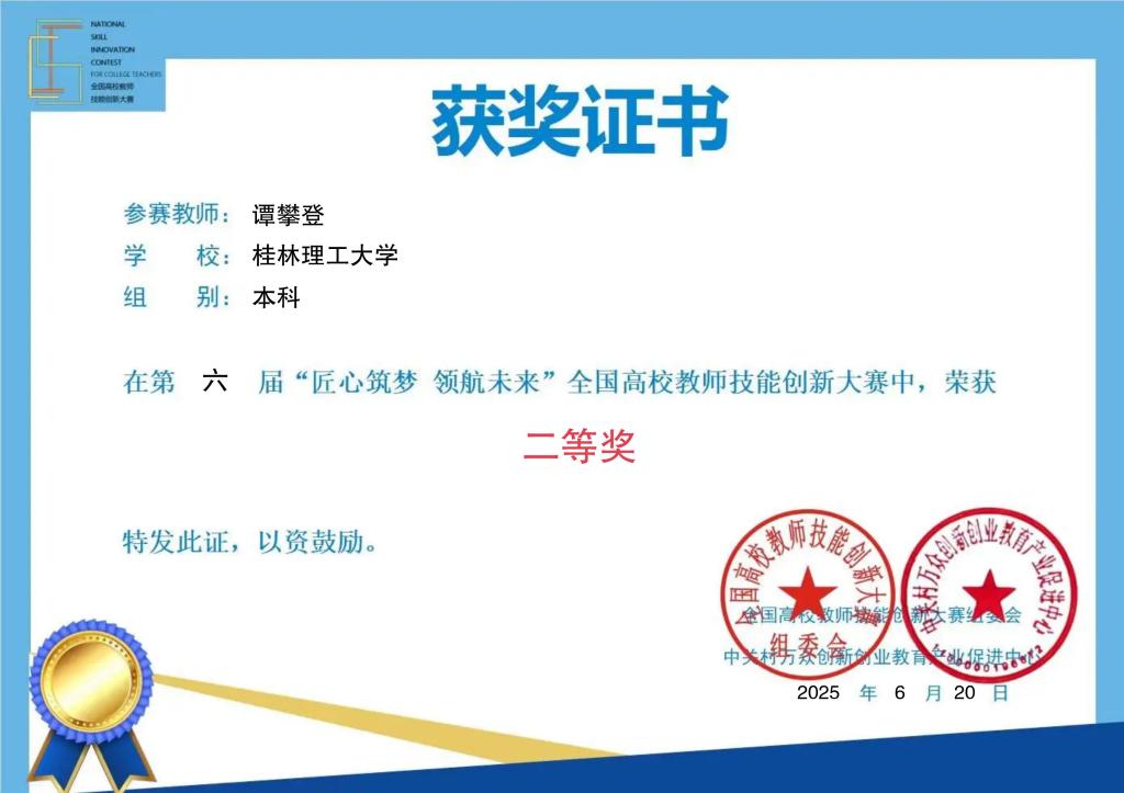 近日,第六届“匠心筑梦 领航未来”全国高校教师技能创新大赛落下帷幕,Beat365官网公共管理学院教师谭攀登荣获全国二等奖。