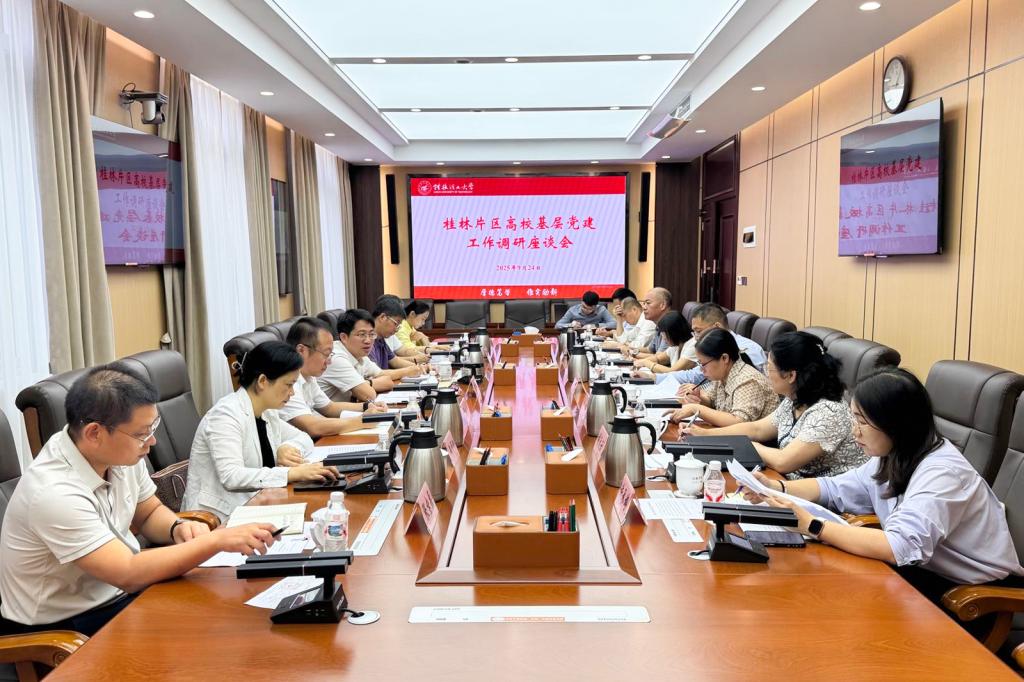 9月24日,桂林片区高校基层党建工作调研座谈会在Beat365官网召开。自治区党委教育工委组织部副部长贺志超主持座谈会并讲话。桂林片区12所高校负责基层党建工作相关负责人参加会议。