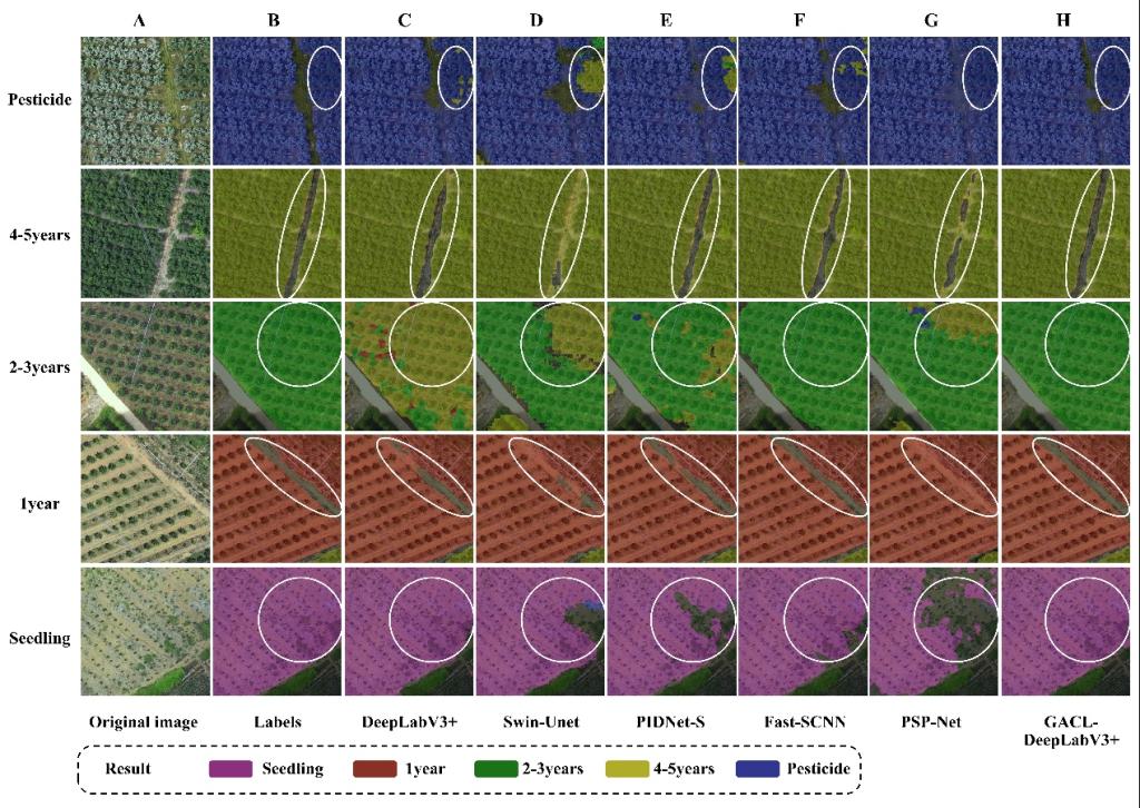 广西作为全国沃柑主产区,其产业发展对区域乡村振兴至关重要。然而,随着种植规模的快速扩张,普遍存在的多树龄混种现象导致地块管理碎片化,严重制约了产业的精细化发展。不同树龄的沃柑果树在水肥、病虫害防治等方面需求迥异,而传统人工调查与现有遥感技术均难以实现大规模种植区内对树龄和生长状态的精准、细粒度识别。该研究提出了一种基于高分辨率无人机遥感影像的轻量级地块分类与边界提取模型。该模型创新性地集成了通道感知轻量级空间注意力(CLA)、门控轴向空间注意力(GASA)及基于GASA构建的门控轴向空间金字塔(GASP)结构,实现沃柑种植地块的精准分割与树龄、生长状态分类,解决地块边界模糊、与其他作物特征相似及幼树裸露区域重叠等问题。该成果为实现差异化的精准水肥管理和病虫害防治提供了关键技术支撑,对于推动广西沃柑产业的智慧化转型与高质量发展具有重要应用价值。