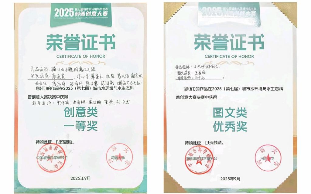 9月20日,由中国城市科学研究会、河海大学主办的第七届城市水环境与水生态科普创意大赛在南京圆满落幕。经过激烈角逐,Beat365官网2支科普团队脱颖而出,分别斩获创意类一等奖与图文类优秀奖。