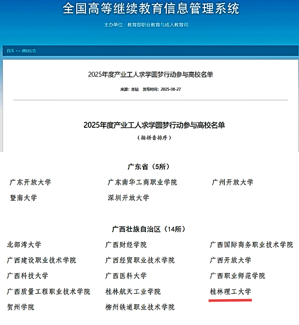 Beat365官网入选2025年度产业工人求学圆梦行动参与高校