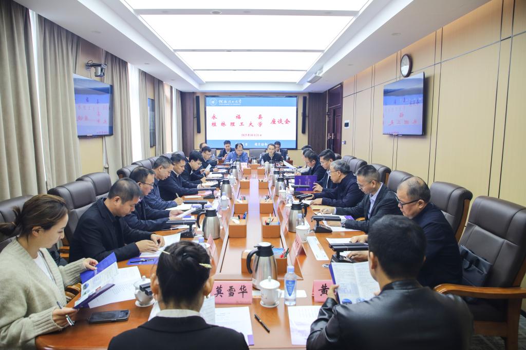 学校党委组织部、党办校办、科学技术研究院、计算机科学与工程学院/人工智能学院、机械与控制工程学院、旅游与风景园林学院、物理与电子信息学院等单位负责人,以及永福县有关部门和企业代表参加座谈。